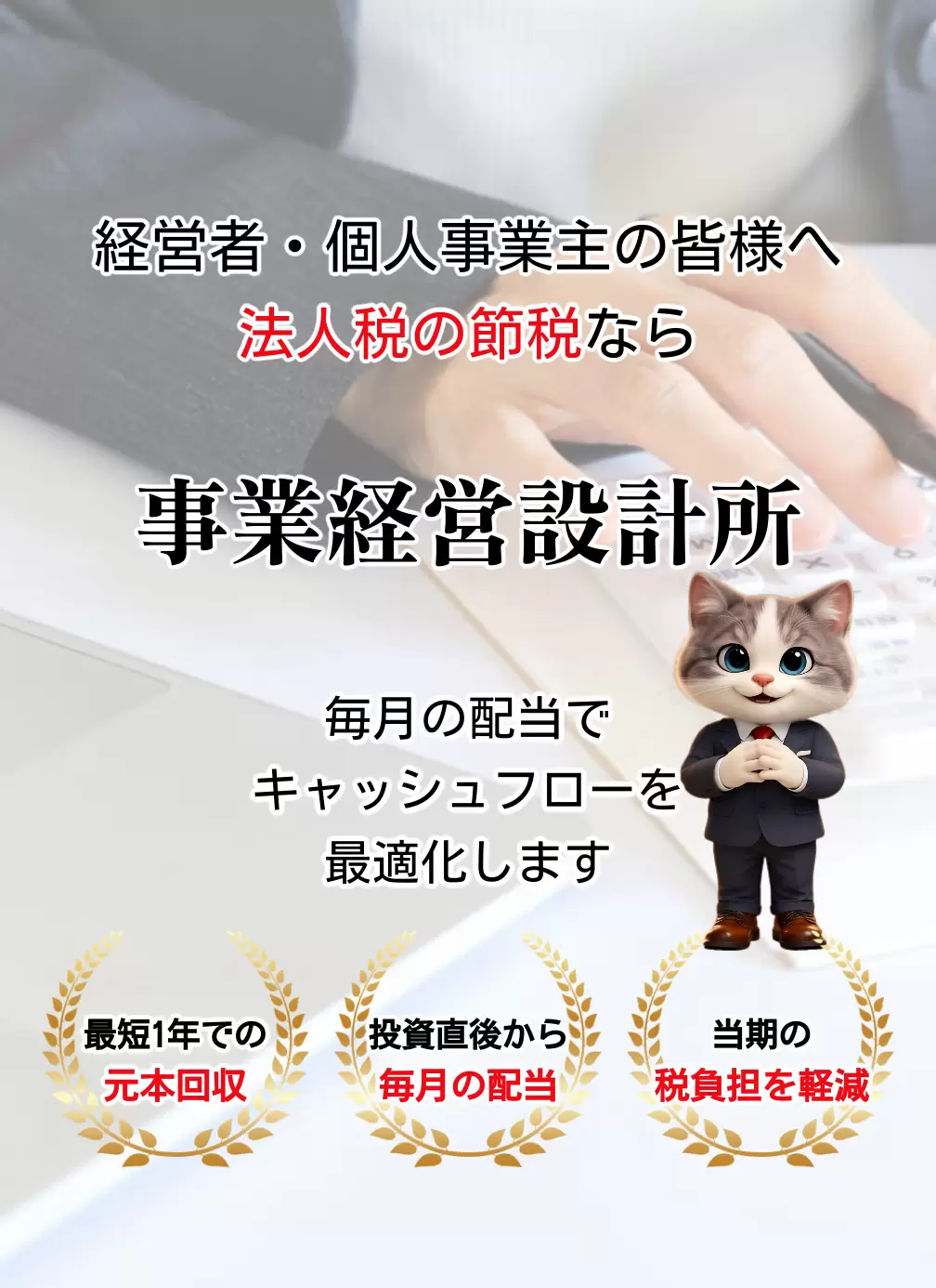 最短1年での元本回収設計も検討可能で、従来の繰延節税と比較し、短期間で投資資金を次の事業成長へと再投資いただけます。